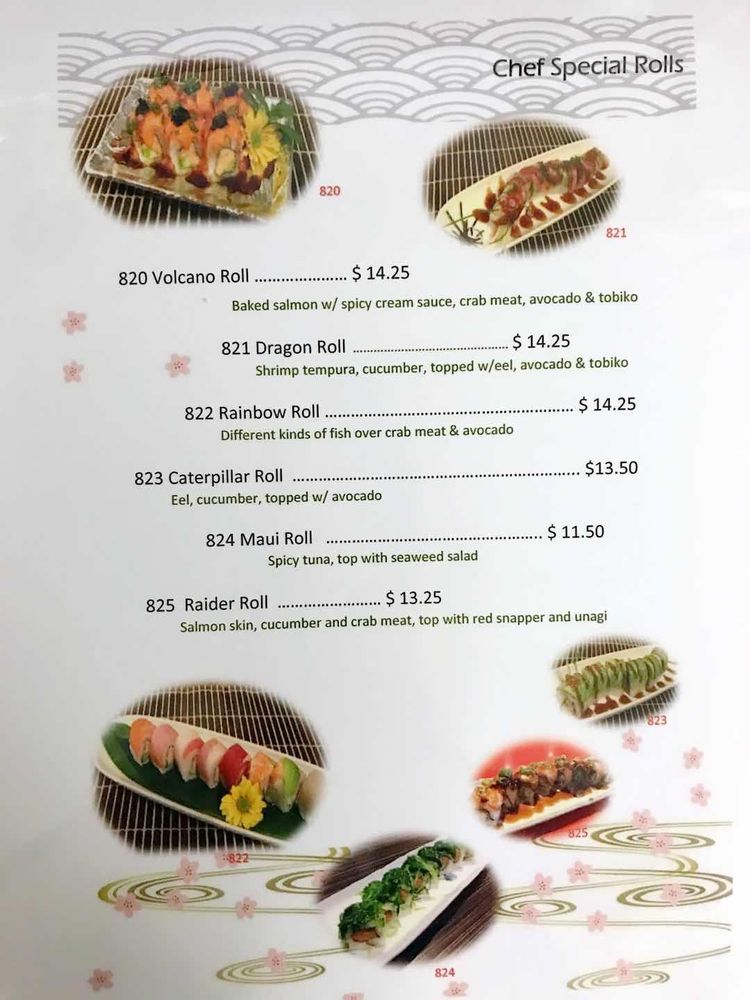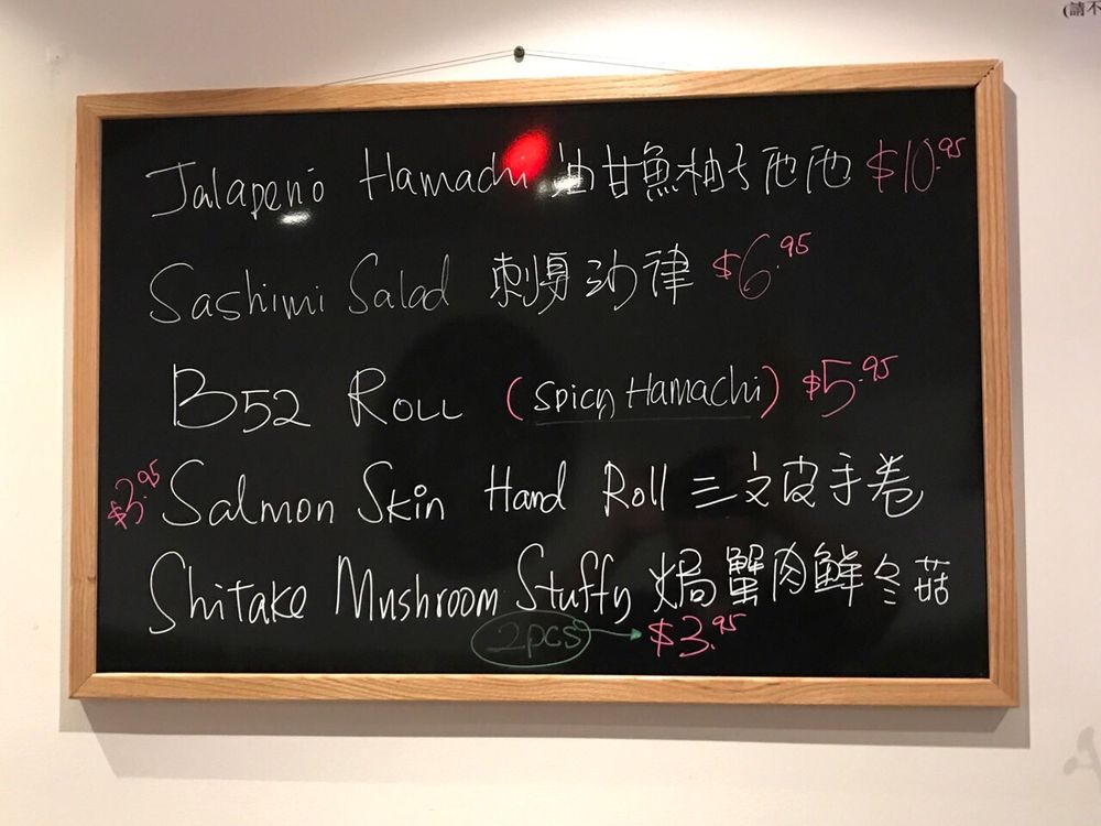 Salmon skin, cucumber and crab meat, top with rad snapper and unagi